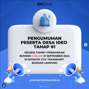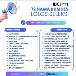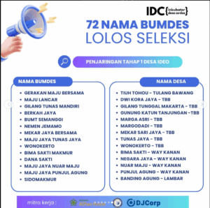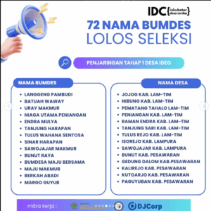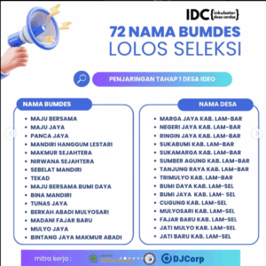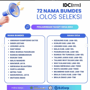 Selamat kepada seluruh peserta (Desa-BUMDes) yang telah berhasil lolos dalam *Tahap 1 DesaIDEO*.